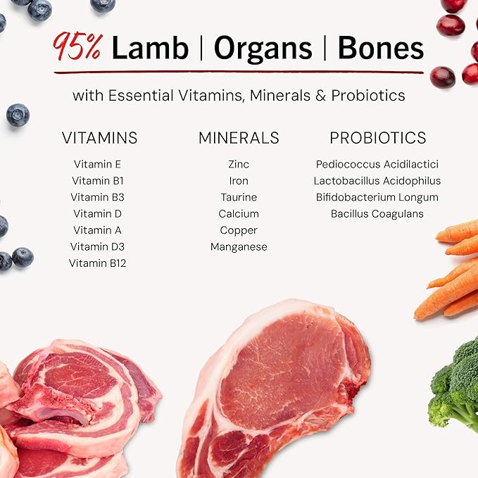 - 95% GRASS-FED LAMB & ORGANS -- Premium freeze-dried raw nutrition with whole-prey approach delivers muscle-building protein, enhanced digestibility, and natural nutrients that support coat, skin, and overall health.