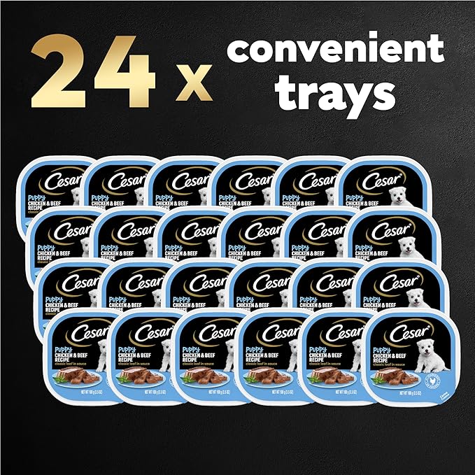 Cesar Puppy Wet Dog Food Classic Loaf in Sauce Chicken & Beef Recipe, 3.5 oz. Easy Peel Trays (24 Count, Pack of 1)