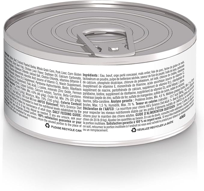 Hill's Science Diet Adult 7+, Senior Adult 7+ Premium Nutrition, Wet Dog Food, Beef & Barley Loaf, 5.8 oz Can, Case of 24