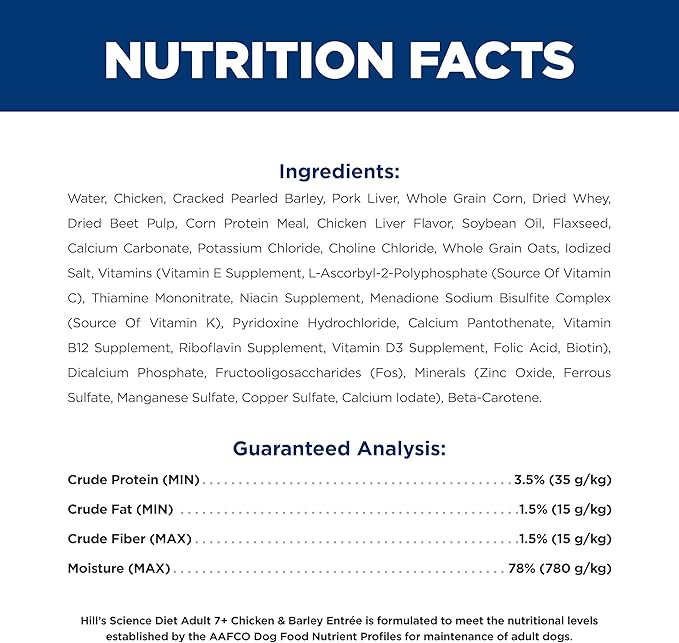 Hill's Science Diet Adult 7+, Senior Adult 7+ Premium Nutrition, Wet Dog Food, Chicken & Barley Loaf, 13 oz Can, Case of 12