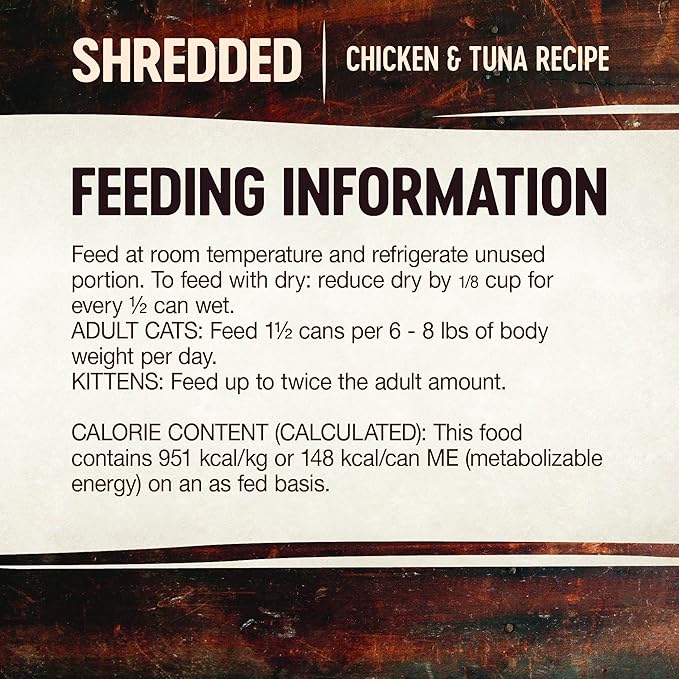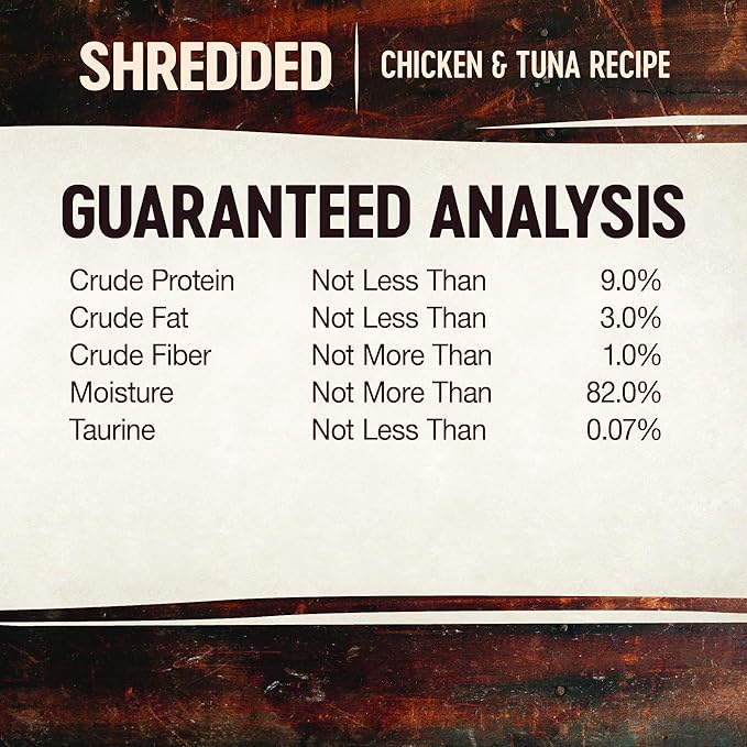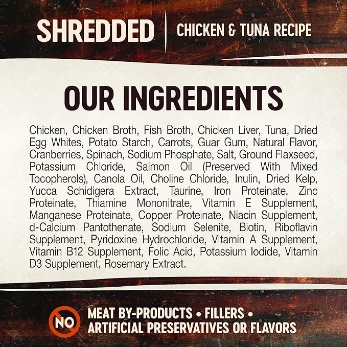 - SHREDDED CHICKEN & TUNA: This natural, grain-free recipe features real chicken and tuna served with a savory, light gravy to satisfy even the most refined palate.