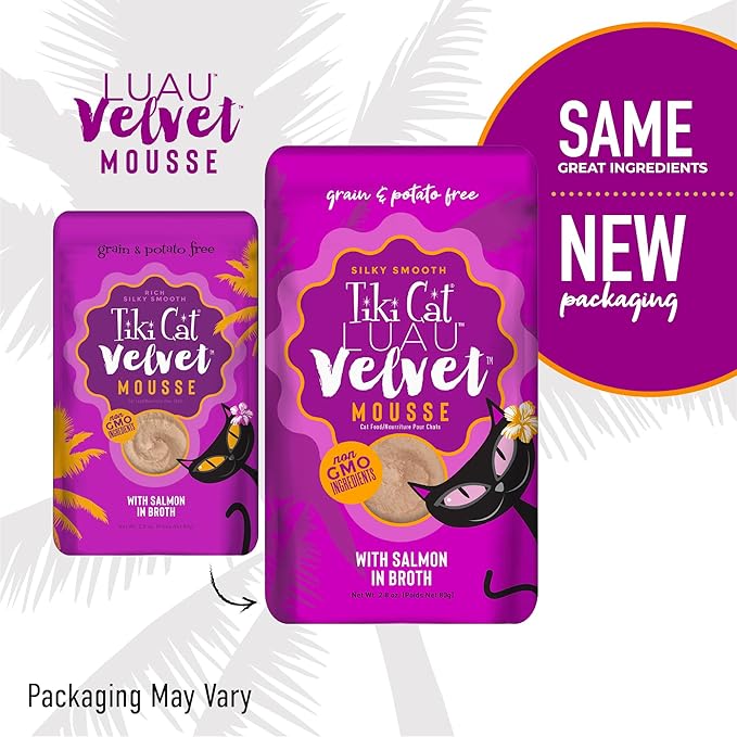 - GRAIN FREE NUTRITION – Made with real Salmon, Tiki Cat Luau Velvet Mousse offers delicious nutrition