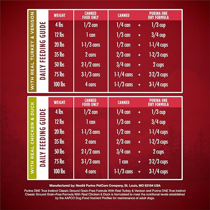 Purina ONE True Instinct Classic Ground Grain-Free Formulas With Real Turkey and Venison, and With Real Chicken and Duck High Protein Wet Dog Food Variety Pack - (Pack of 6) 13 oz. Cans