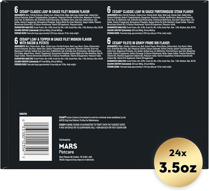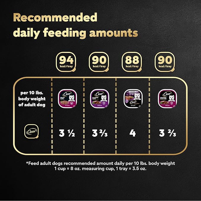 Cesar Wet Dog Food Steak Lovers Variety Pack with Real Meat, 3.5 oz. Trays (24 Count, Pack of 1)
