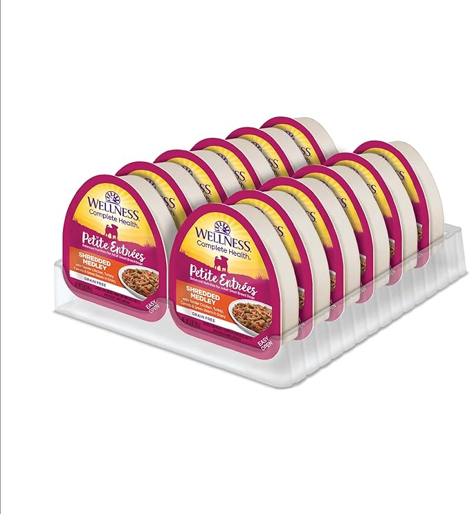 Wellness Petite Entrées Shredded Medley with Tender Chicken, Turkey, Carrots & Green Beans, 3-Ounce Cup (Pack of 12)