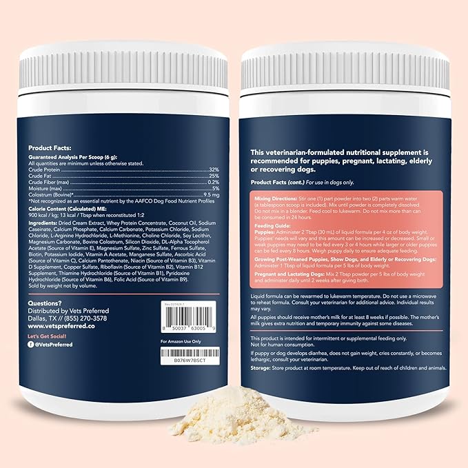 - NUTRITION FOR PUPPIES & MOTHERS – Vets Preferred Dog Milk Replacer provides essential nutrients to support healthy growth in newborn puppies and recovery nutrition for pregnant and nursing dogs.