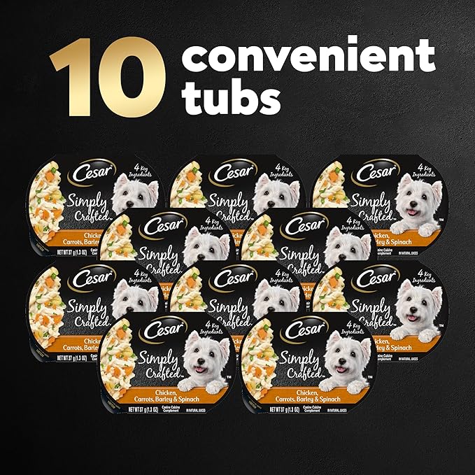 Cesar Simply Crafted Adult Wet Dog Food Meal Topper, Chicken, Carrots, Barley & Spinach, 1.3oz. (10 Count, Pack of 1)