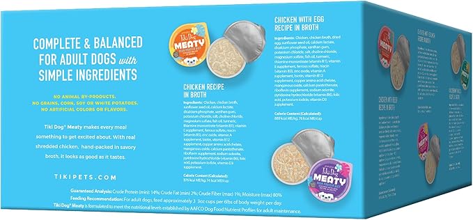 - DESIGNED FOR SMALL TO MEDIUM SIZED DOGS - Tiki Dog Meaty Wet Dog Food is a nutritionally balanced meal for adult dogs.