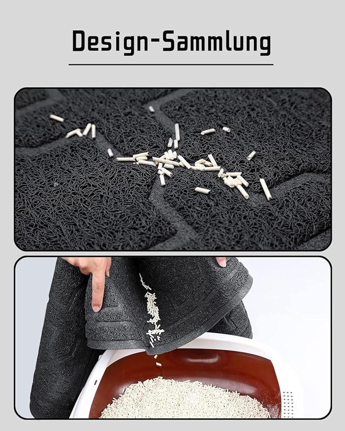 - NON-SLIP & WATERPROOF: Our cat litter mat litter trapping mat non-slip Litter box rug backing has a non-slip texture that holds your litter box in place, will not slip. Bottom layer is waterproof can keep a mess of spilled pet's water and urine on the litter pads, instead of on your floor
