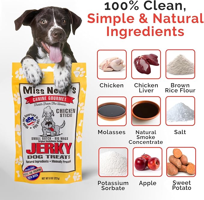 Miss Nelly's - Chicken Jerky Dog Treats - Soft Sticks - USA Made and Sourced - Original Smoke House Recipe - Small Batch Chicken Jerky for Dogs - Minimally Processed - 8 oz. Bag