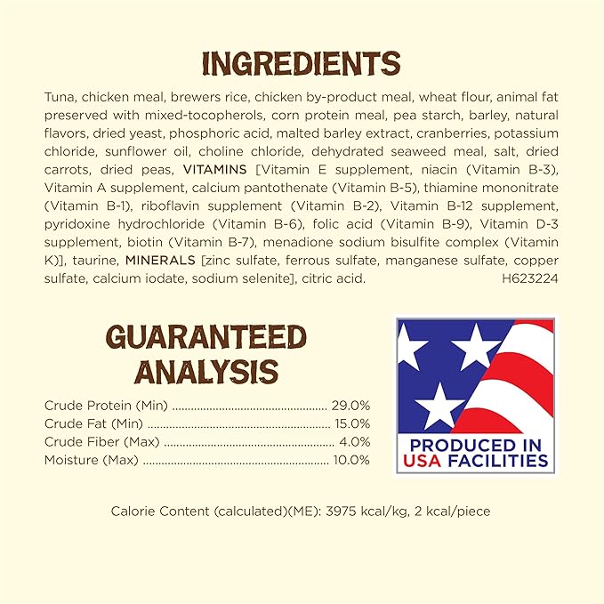 - Natural cat treats crafted with added vitamins, minerals and nutrients and featuring a crunchy texture that helps keep cat teeth clean