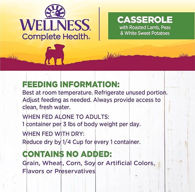Wellness Petite Entrées Casserole with Roasted Lamb, Peas & White Sweet Potatoes, 3-Ounce Cup (Pack of 12)