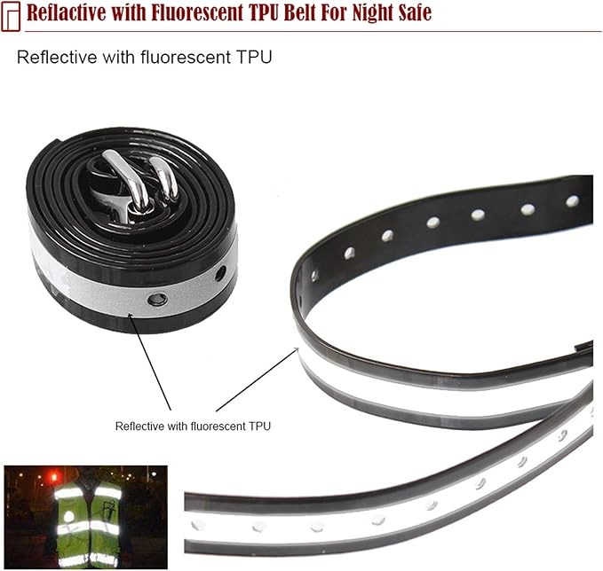 • [Eco-friendly,Waterproof,Safe&Adjustable Collar] The collar is made of eco-friendly TPU material and will dissolve into powder finally. The outer layer is equipped with a reflective belt to keep your dogs safe at night.The receiver is IP65 dust-proof and IPX7 waterproof and can be used in the rain and wet environments.The collar size ranges from 8 to 28 inches, suitable for all dogs (10 to 110 lbs),and is adjustable.One transmitter can match up to 3 collars and control each dog separately.