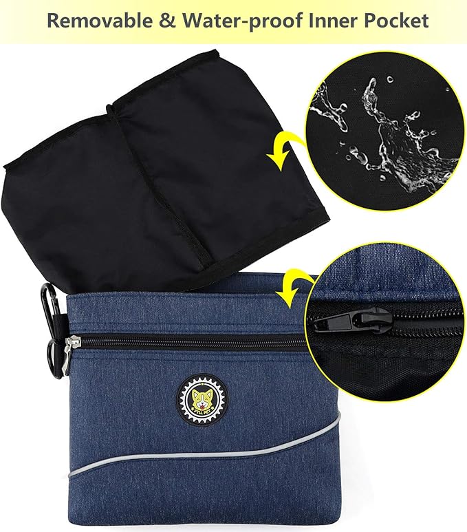 - REMOVABLE INNER POCKET: The dog training bag is made of high quality waterproof 70D nylon fabric, and the inner pocket can be completely removed with a zipper, then you can wash it by hand or in the washing machine cleanly.