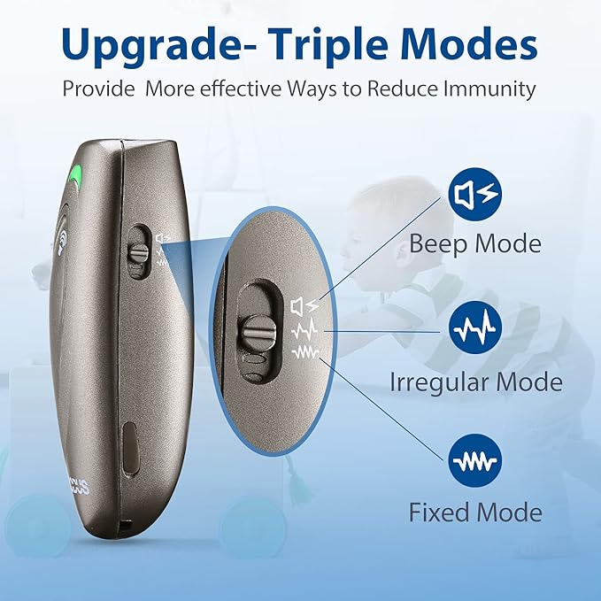 - 3 Adjustable Modes-Upgraded Technology: Compared to the first generation, the upgraded version of MODUS anti barking device has three modes, including 2 adjustable ultrasonic modes which can effectively prevent dogs from adapting to specific ultrasonic frequency, and a beep mode which is designed as a dog clicker and a dog whistle. We recommend using beep mode before ultrasonic mode emission that establishes a conditioned reflex to the beep sound, resulting in better training effect.