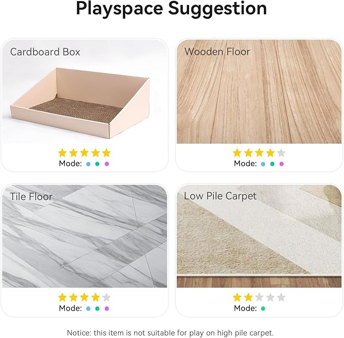 - Kindly Reminders: Cheerble motion activated cat toy is suitable for hard floors, not great on carpets. In addition, the ball is not waterproof. If you receive defective ball, please contact us. We will send you a new replacement.
