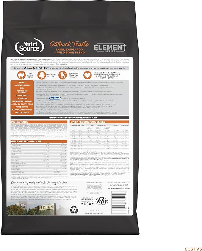 - As a member of our grain inclusive series, NutriSource Element Series Outback Trails Dry Dog Food is formulated to meet AAFCO guidelines for all lifestages