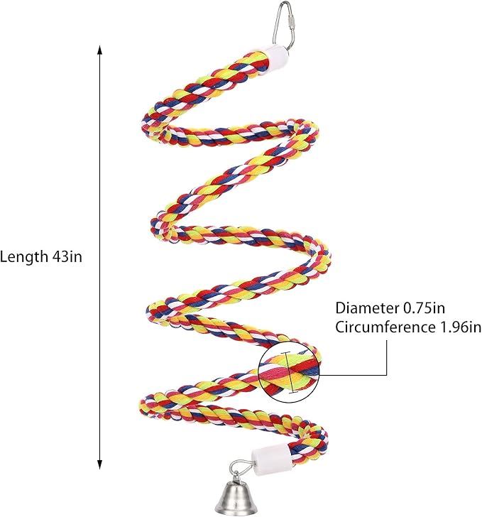 - π¦[WHAT YOU GET] 2pcs 43ββ length soft cotton rope bird spriral perch with metal bell,fully closed/open hook can hang in birdcage or outside safety,bendable internal steel wire can re-sharp it provide more fun for your pets