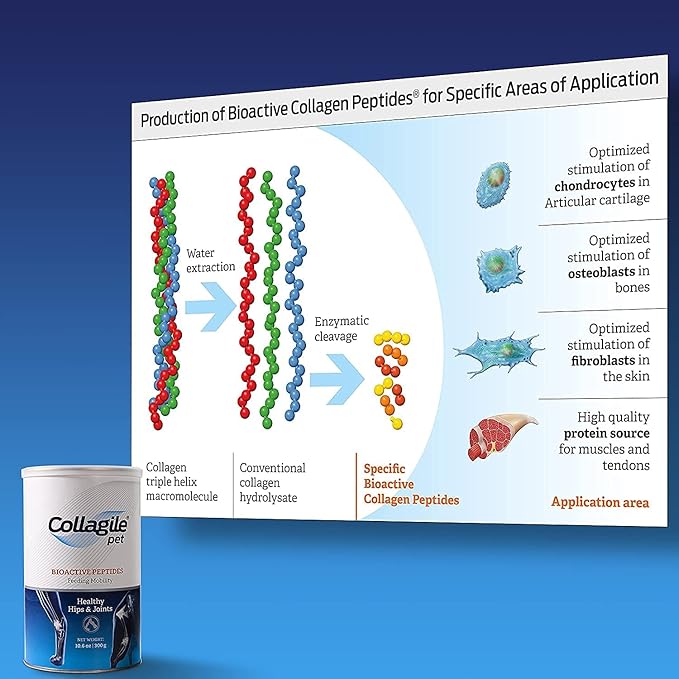 - We suggest Collagile pet if your dog is having Difficulties going for Walks, Getting Up, Climbing Stairs or Jumping into the Car
