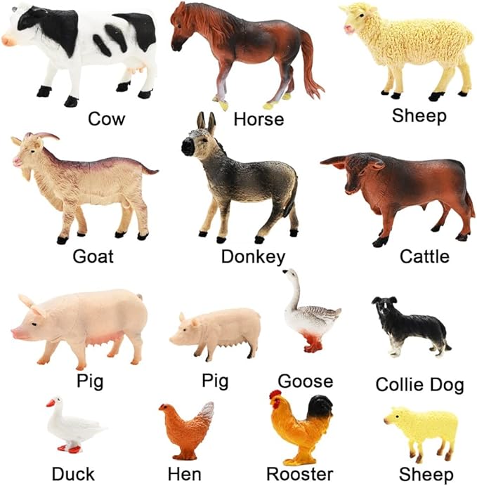 - šÆ LEARNING EDUCATIONAL TOY: They're also the great pretend play props, enhancing animals vocabulary, language skills, creative thinking and active cognitive learning through imaginative play. Realistic detailed farm animals are easy for toddler to distinguish, it's the good learning toys. Also this farm toys can also make away your kids from electronics which can protect their eyesight.