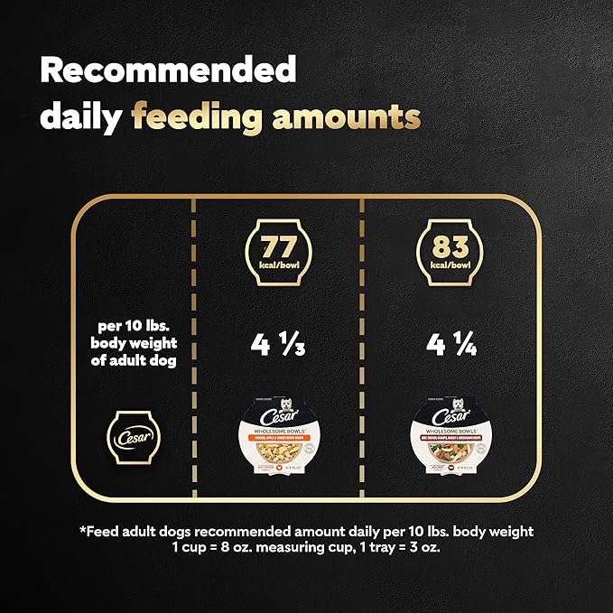 Cesar Wholesome Bowls Adult Wet Dog Food, Beef, Chicken, Carrots, Barley & Green Beans Recipe and Chicken, Apple & Sweet Potato Recipe Variety Pack, 3 oz. (6 Count, Pack of 1)
