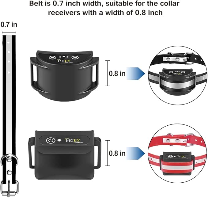 - 【 Universal Collar Size 】 Adjustable dog collar strap is 0.7" wide and 27" long. Fits 7 - 26" dog necks. Universal collars fit on most receivers and training equipment.