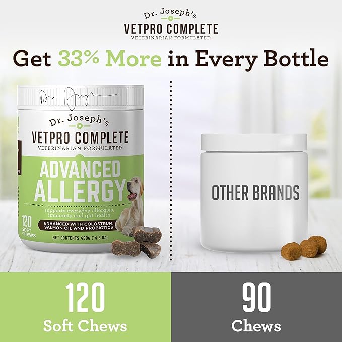- Veterinarian Formulated - With over 40 years of experience, Dr. Joseph developed our extensive line of scientifically backed dog supplements & vitamins. With our allergy medication for dog health & wellbeing, your pup will enjoy an active, energetic, and comfortable lifestyle for years to come. Whether you need a dog skin and coat supplement, hot spot and itch relief treatment, or an allergy immune supplement for dogs, VetPro provides dog health supplies for optimal canine functioning.