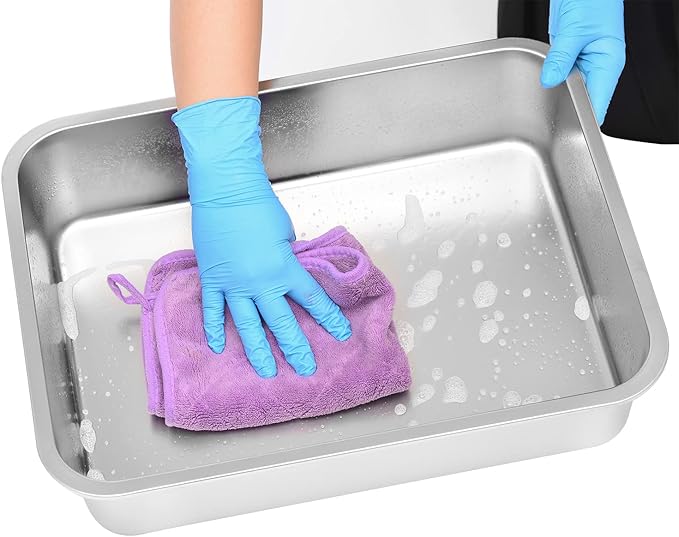 Kichwit Stainless Steel Cat Litter Box, Metal Cat Litter Pan, Kitten Litter Box Tray, Non Stick Smooth Surface (17.5" L x 13.5" W x 6" H)
