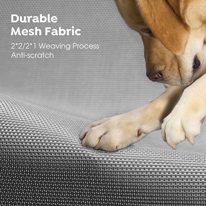 - Stay Cool Ever! Crafted of Textilene mesh fabric, the cooling dog cot allows air to flow, keeping your pets cool while they relax in the heat. Also allow water or urine to go thru, no puddles formed. Besides, the teslin mesh features heat-resistance, sturdy, and breathability.