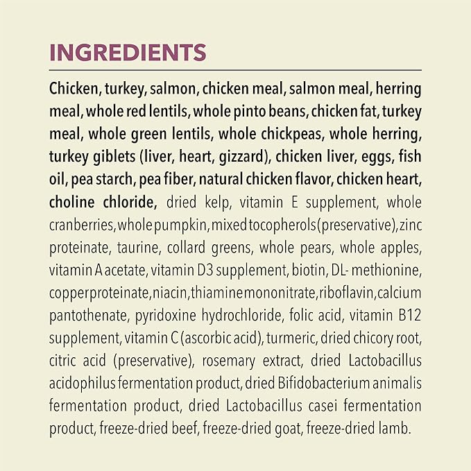- High protein grain free dry cat food recipe features free run* chicken, free run* turkey and salmon and is balanced to include 75 percent** animal ingredients