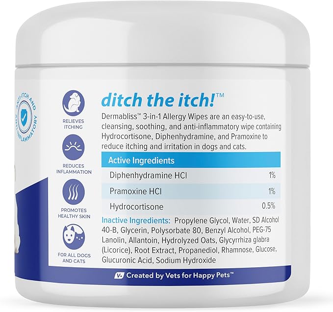 - CREATED BY VETS FOR HAPPY PETS: Dermabliss ditch the itch skin and allergy care–and all Vetnique products–are created with the health and well-being of pets and pet parents in mind. Be sure to check our store page for more great pet products.