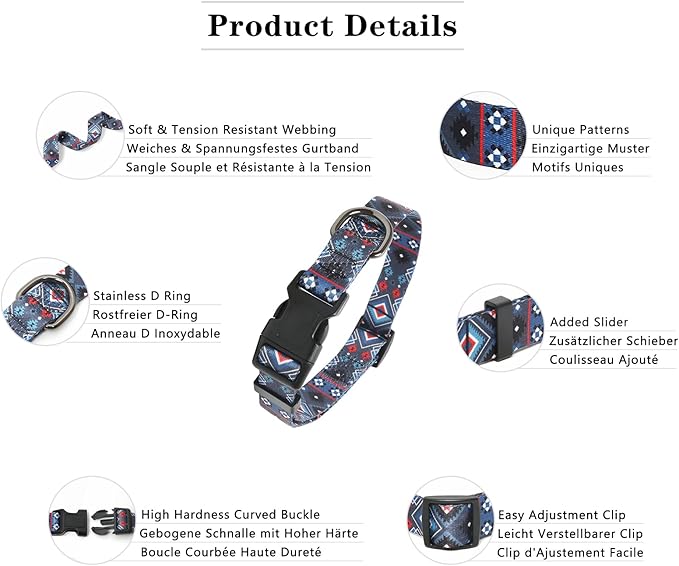 HEELE Dog Collar, Adjustable Soft Dog Collar for Small Medium Large Dogs,Bohemia Patterned Puppy Collars with Quick Release Buckle S Length 9.84''-14.96'