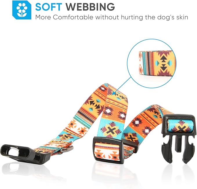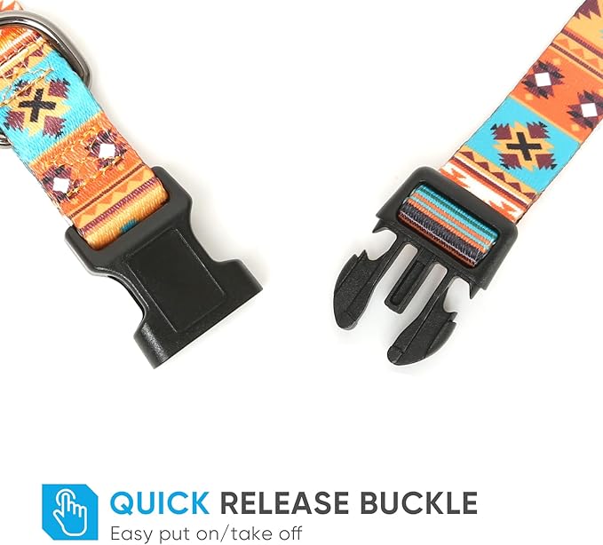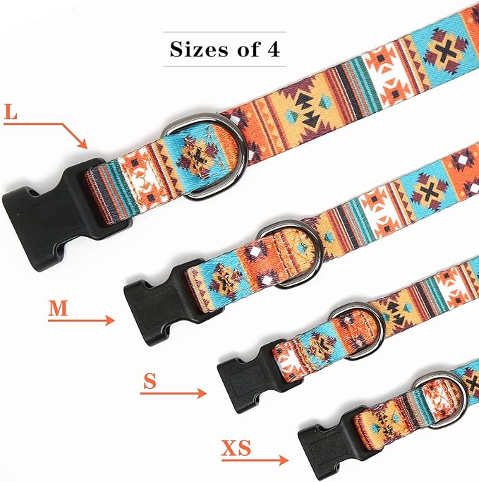 HEELE Dog Collar, Adjustable Soft Dog Collar for Small Medium Large Dogs,Bohemia Patterned Puppy Collars with Quick Release Buckle S Length 9.84''-14.96'