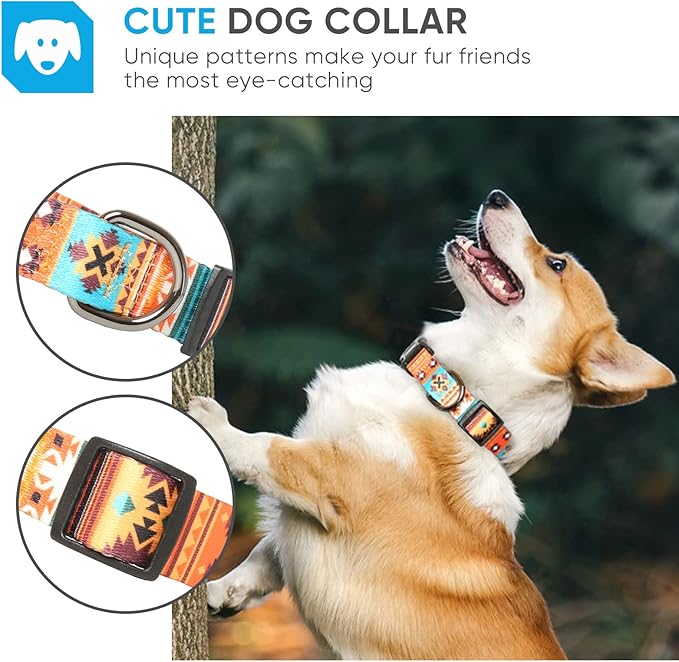 HEELE Dog Collar, Adjustable Soft Dog Collar for Small Medium Large Dogs,Bohemia Patterned Puppy Collars with Quick Release Buckle XS Length 8.5''-11''