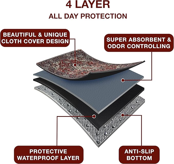 - Ultra-Absorbent and Leak-Proof Washable Dog Pee Pads - Our multi-layered reusable puppy pads feature a waterproof TPU coating that effectively absorbs and retains liquid, preventing leaks and odors. Designed to withstand repeated washing and urine soaking, these durable whelping pads are perfect for housebreaking, incontinence, or post-surgery care. The non-slip backing keeps the pad securely in place, making it ideal for use on hardwood floors or in crates. Stylish and