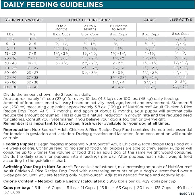 - CONTAINS: (1) 26LB Bag of NutriSource Chicken and Rice Dry Dog Food