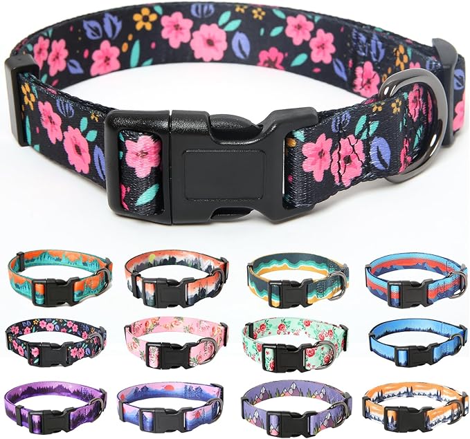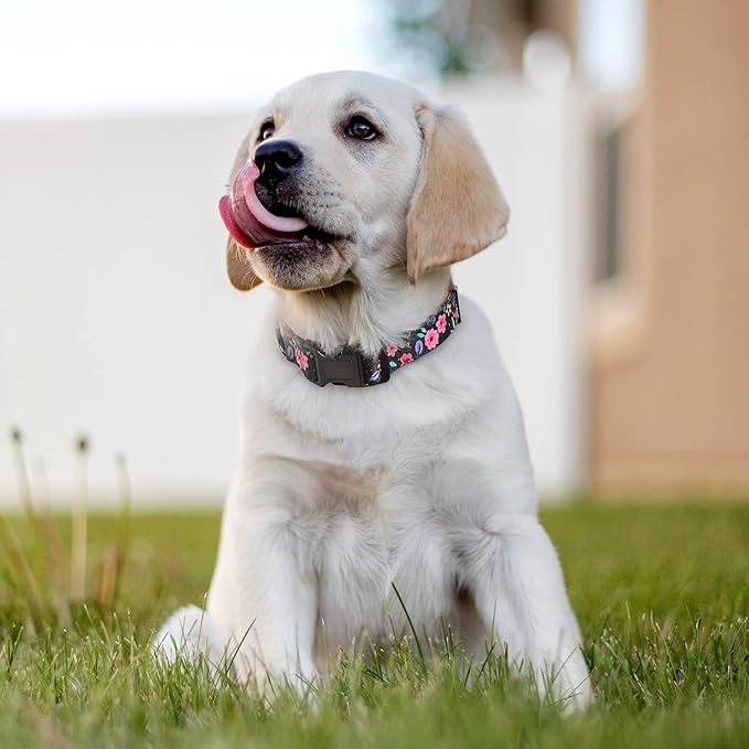 HEELE Dog Collar, Adjustable Soft Dog Collar for Small Medium Large Dogs,Floral Patterned Puppy Collars with Quick Release Buckle M Length 13.39''-20.87''