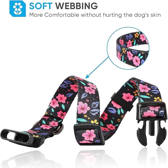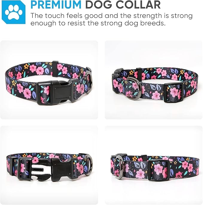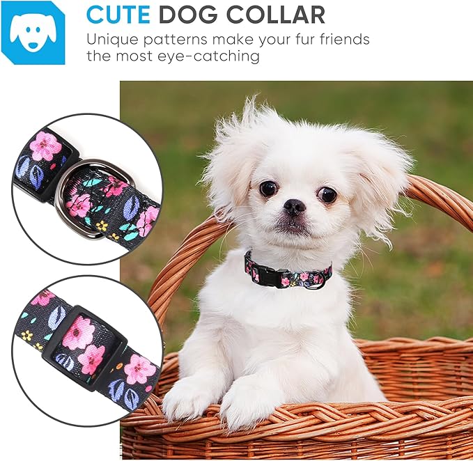 HEELE Dog Collar, Adjustable Soft Dog Collar for Small Medium Large Dogs,Floral Patterned Puppy Collars with Quick Release Buckle XS Length 8.5''-11''
