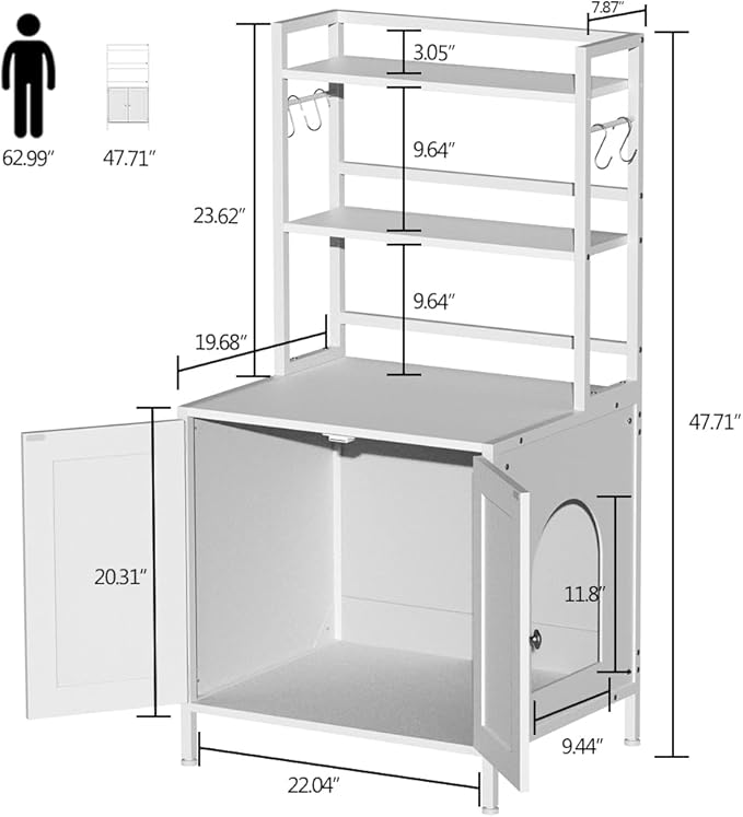 - 【New Upgrade Cat Litter Box Enclosure】 2 tier shelves and side hanging bar with 4 hooks.You can store cat food,cat litter shovel,toys etc on it,or display our favorite collections.