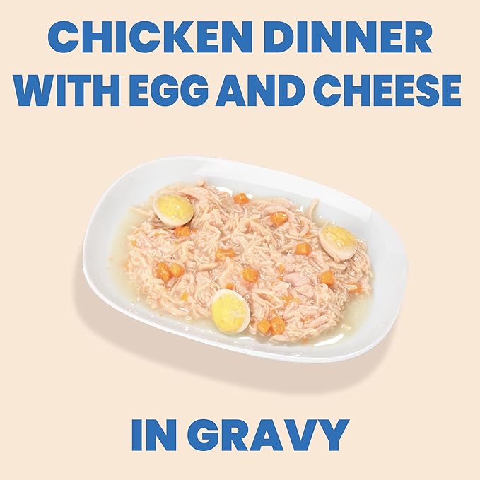 - PREMIUM INGREDIENTS–Our dog food made with Chicken, Egg, and Cheese as the first ingredients, originally fit for human consumption, now exclusively for pet food in a delightful wet dog food for top-quality nutrition.