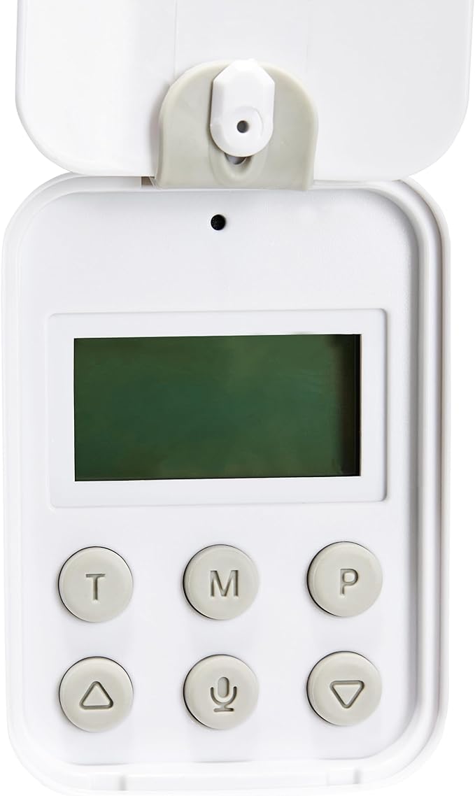 - Records custom voice messages up to 10 seconds long that call your pet when it’s time to eat