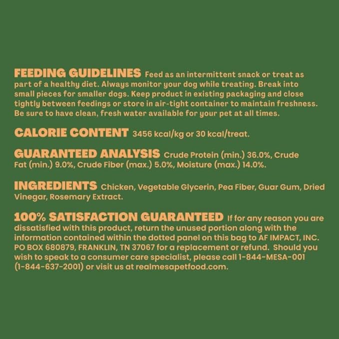 - Convenient 9.5 oz Size - The Reál Mesa chicken dog treats jerky comes in a portable 9.5 oz bag that fits perfectly in purses, cars, or dog-walking bags. This convenient size ensures you have a tasty, nutritious reward ready for your pup wherever you go
