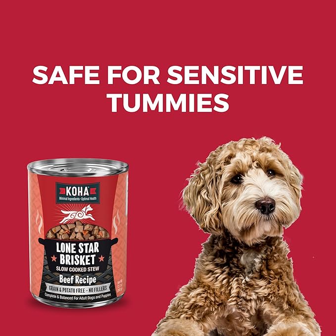 KOHA Lone Star Brisket Stew for Dogs with Beef, High Protein Wet Dog Food, 12.7oz Cans (Case of 12)
