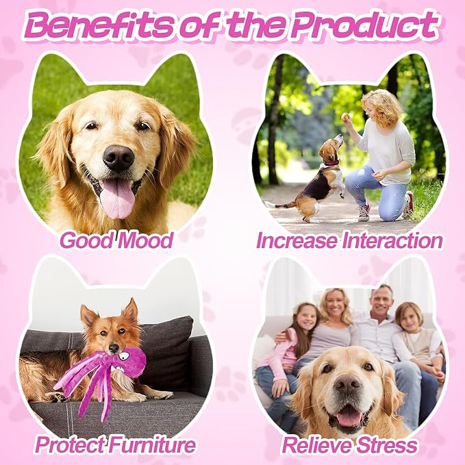 - 2-Pack Octopus Dog Toys: Our octopus toys come in vibrant colors and are designed with an adorable octopus shape that dogs find irresistible. Eight legs design makes it perfect for games of tug-of-war and fetch. The design ensures the toy is easy for your pet to carry, throw, and roll around. Whether you have a puppy, small dog, medium dog, or large dog, these toys will bring joy and excitement to playtime.