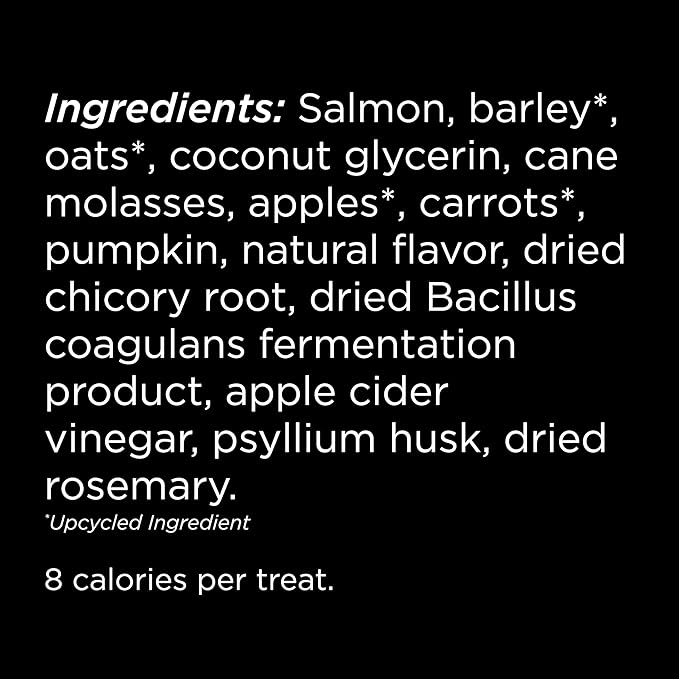 - Featuring Upcycled Ingredients: Made with "perfectly imperfect" ingredients from the human food chain that would not be consumed otherwise - we put their nutrients to use so they don't go to waste. Denoted by asterisks in the ingredient panel on-pack, making these treats not just nutritious but also environmentally friendly.