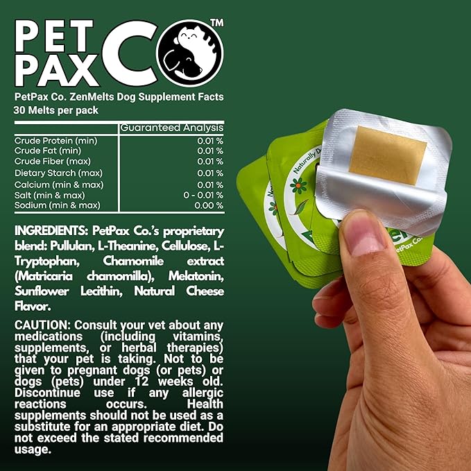 - [Natural Calm for Your Pup]: Whether it’s thunderstorms, vet visits, fireworks, or everyday stress, ZenMelts are formulated to help your dog relax with natural, vet-approved ingredients. Our fast-acting oral melts are designed to provide peace and relaxation without causing drowsiness or dependency.