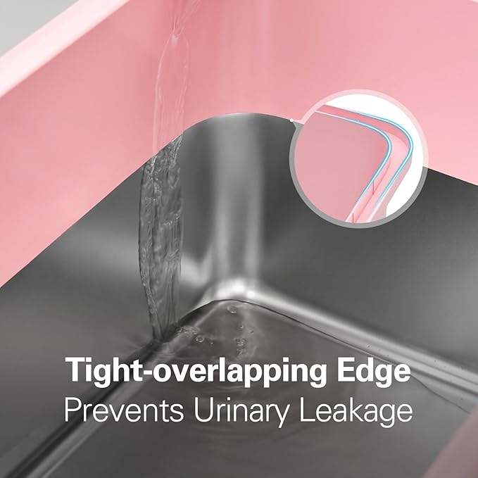 - 【Sturdy Stainless Steel Build】: Constructed from thick stainless steel for added durability, the stainless steel litter box is designed to withstand daily use, resisting rust and scratches from cat paws. The non-porous nature feature of stainless steel litter box also prevents odors from lingering, extending the lifespan and reducing the need for frequent replacement