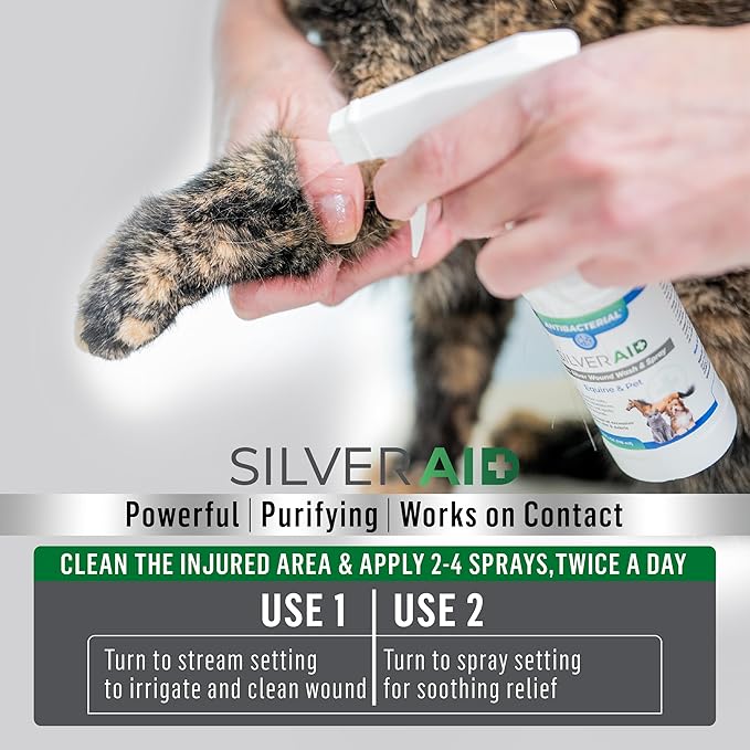 - SUITABLE FOR ALL ANIMALS – SilverAid is third-party tested and crafted for use on all skin types, including fur, feathers, and scales. Ideal for routine care of dogs, cats, horses, and other animals, large or small.