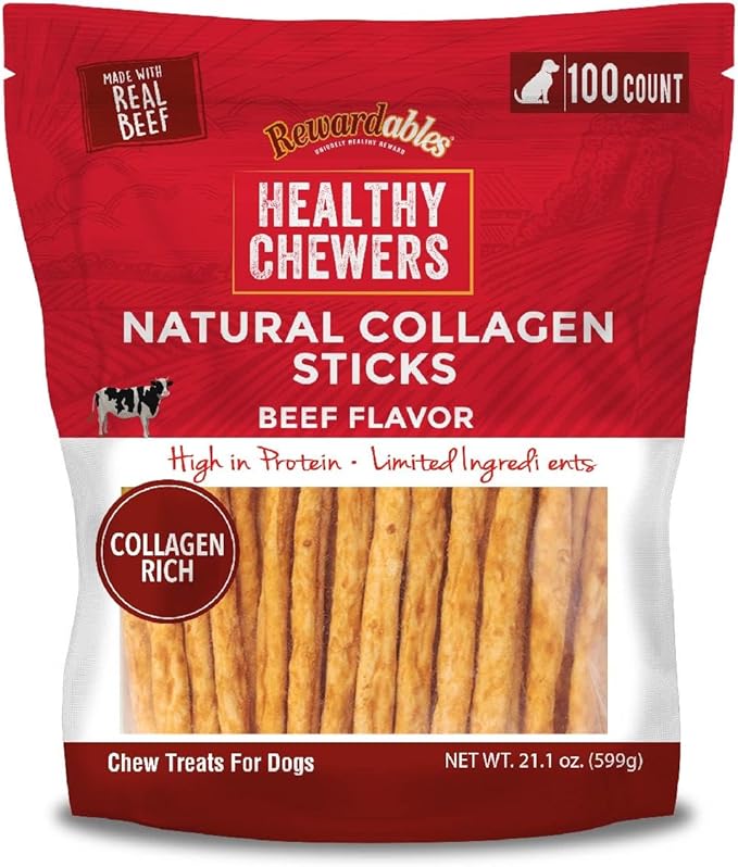 | Healthy Chewers | Natural Collagen and Beef Sticks for Dogs | 100 Count | High Protein and Limited Ingredient Dog Chews