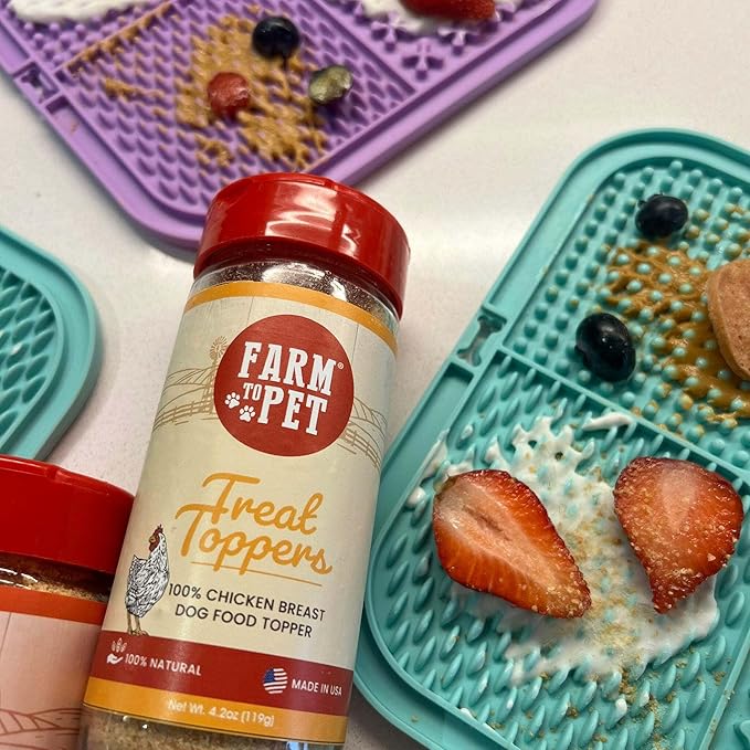 - HEALTHY DOG FOOD TOPPERS: Indulge your pet in the pure delight of Farm to Pet Chicken Treat Toppers, made from 100% chicken breast. These dog meal toppers are a testament to our commitment to quality and are sourced from trusted farmers. The small particles allow easy customization, making them a perfect puppy topper for your pet's meals. With no artificial additives or preservatives, these dog food toppers provide a natural burst of protein, promoting health and happiness for your furry friend.